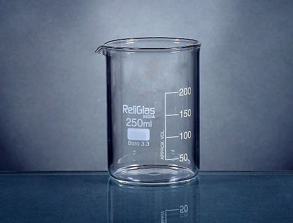Beakers Low form, ‘RELIGLAS’, with spout, Approx. graduation ± 5% accuracy. Complies with IS 2619/ ISO 3819 & DIN 12331.