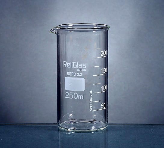 Beakers Tall form, ‘RELIGLAS’, without spout, graduation ±5% accuracy. Complies with IS 2619/ ISO 3819 & DIN 12331.